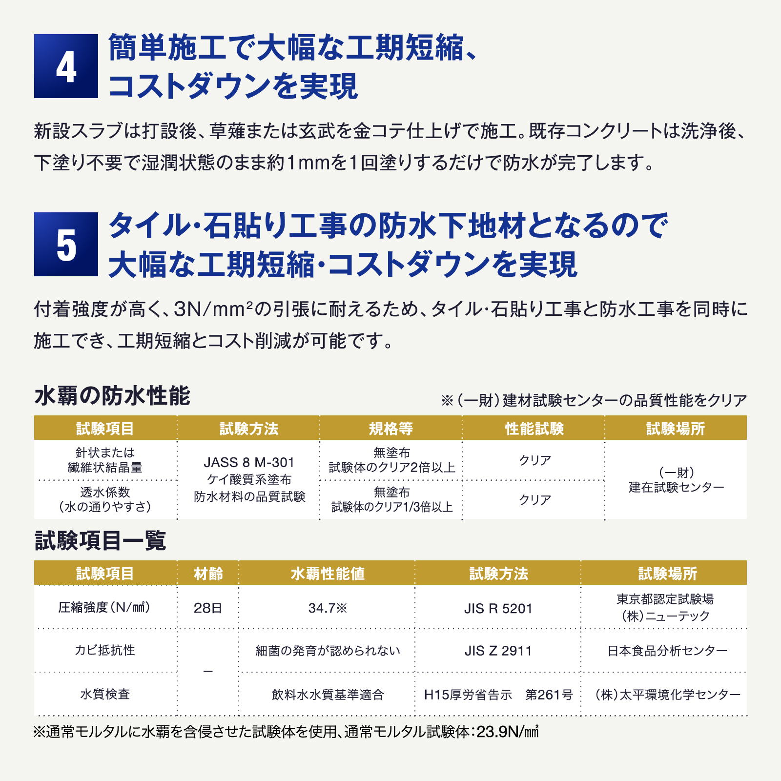 水溶液タイプで含侵速度が速いことに加えて、簡単に防水工事が可能!